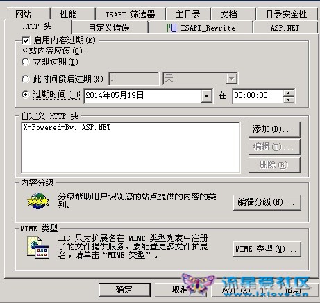 在IIS中定位到網(wǎng)站存放圖片的文件夾,然后打開屬性窗口,在HTTP Headers中做出如下選擇,要求組件的過期時(shí)間為本次請求后1天,也就是在本地緩存86400秒。