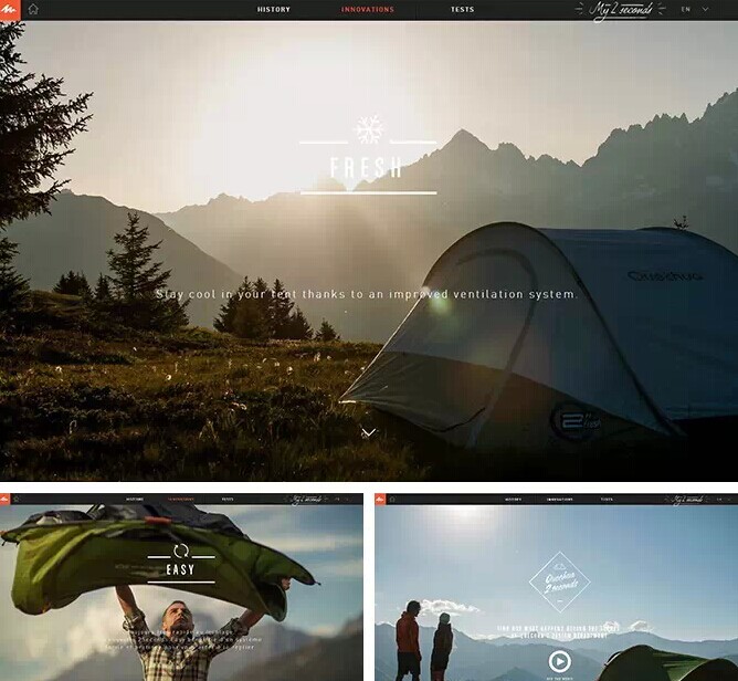 例如,Quechua山地運(yùn)動(dòng)品牌,通過(guò)幾張照片和簡(jiǎn)單文字的說(shuō)明,將Quechua帳篷的特點(diǎn)及所處環(huán)境真實(shí)體現(xiàn),仿佛一場(chǎng)美妙之旅讓人心動(dòng)。