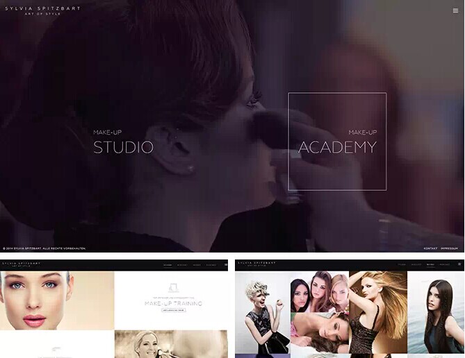 例如:“sylviaspitzbart”化妝工作室,利用纖細(xì)線框,將內(nèi)容很好的分割,頁(yè)面簡(jiǎn)潔而大方又不失品質(zhì)。