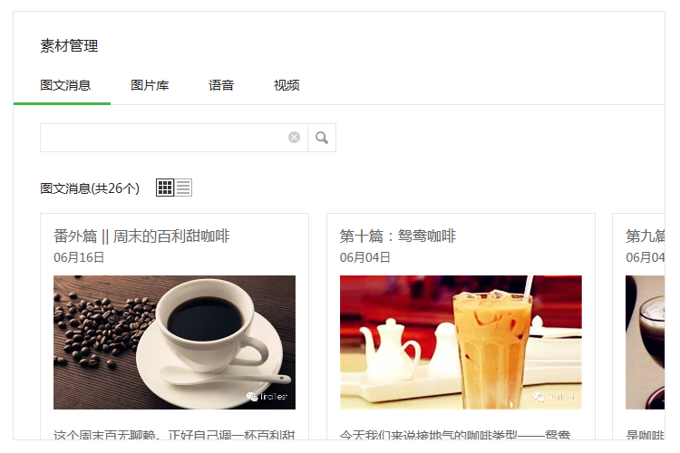 3. 圖文消息素材庫(kù)支持卡片和列表兩種展示形式