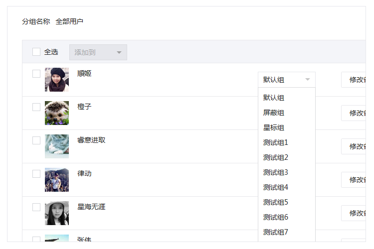 每頁(yè)顯示用戶擴(kuò)展到20個(gè),且用戶下拉分組最多可同時(shí)出現(xiàn)10個(gè),方便運(yùn)營(yíng)者操作。