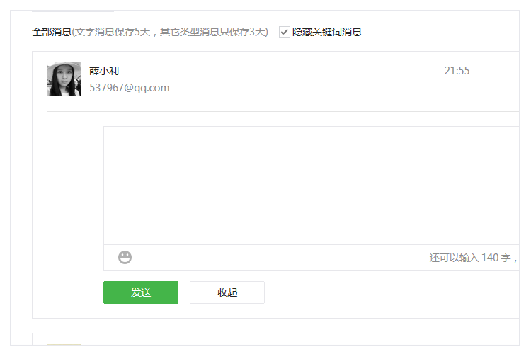 加強(qiáng)回復(fù)框與對(duì)應(yīng)粉絲的關(guān)聯(lián),縮小消息回復(fù)框。且新增換行快捷鍵Shift+Enter,方便運(yùn)營(yíng)者與粉絲個(gè)性化互動(dòng)。