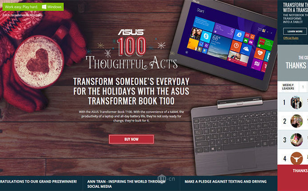 100 Thoughtful Acts是一個(gè)給人一種無(wú)比注重美學(xué)印象的網(wǎng)站。用心觀察不難發(fā)現(xiàn)細(xì)小的CTA是一個(gè)由文本和色彩組成,而采用按鈕采用紅色的基調(diào)顯然是最明確的選擇,它令按鈕融合到環(huán)境中,而不是從中脫穎而出,給人很舒服的感覺(jué)。