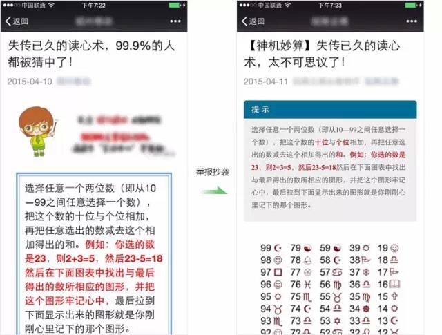 自2015年2月3日公布《微信公眾平臺(tái)關(guān)于抄襲行為處罰規(guī)則的公示》以來(lái),微信公眾平臺(tái)累計(jì)刪除抄襲侵權(quán)內(nèi)容32000余篇,處罰公眾帳號(hào)497個(gè)。