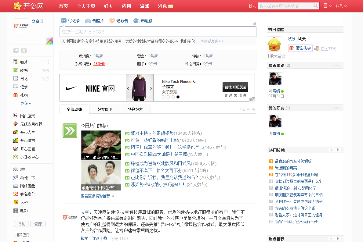 社區(qū)營銷并不是一個簡單的工作,推廣的效果不能夠立竿見影,需要經過時間的發(fā)酵,慢慢的醞釀才能體現出來的,但是如今有很多公司都希望一最短的時間就能見到很好的推廣效果,這點想要利用SNS社區(qū)營銷實現還是有一定的困難的,但是不可否認的是SNS社區(qū)營銷的效果真的不錯,或許有時企業(yè)真的應該改變自己的想法,因為太急于求成,反而不利于企業(yè)的長久發(fā)展,天津網站建設-文率科技http://www.avishai84.com/一直都在使用開心網、人人網,效果還是相對比較理想的。