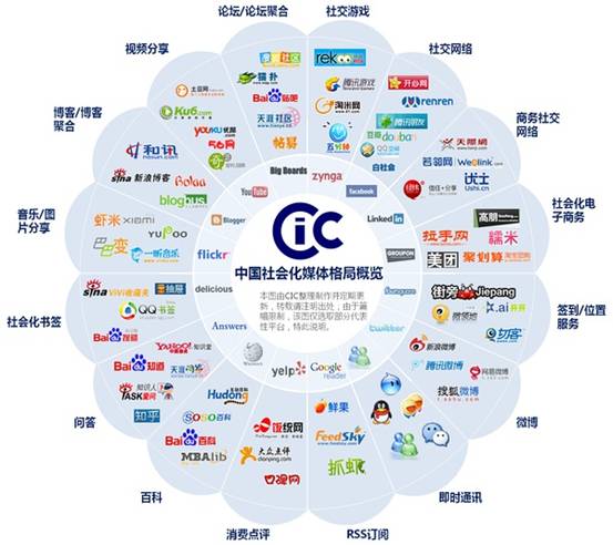 以下是中國社會化媒體&溝通的大致格局: