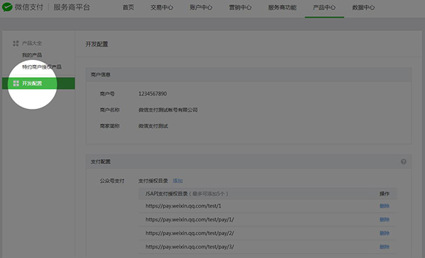 新入口:商戶平臺(tái)>產(chǎn)品中心>開發(fā)配置