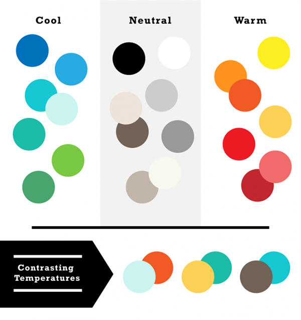 配色同樣最容易被感知到的設計元素,色彩的色相、明暗、飽和度上的差異,都可以制造足夠的對比度。同一種色相下,不同深淺的顏色之間的對比是非常明顯的,而我們最常見的就是在黑色背景上的白色文本和在白色背景上的黑色文本,這種對比度確保了內(nèi)容擁有基本的可讀性。當然,在實際的色彩搭配當中,對比度足夠明顯的配色方案會更加復雜,通常而言,下面的幾種搭配方式能夠給你對比明顯效果不錯的配色: