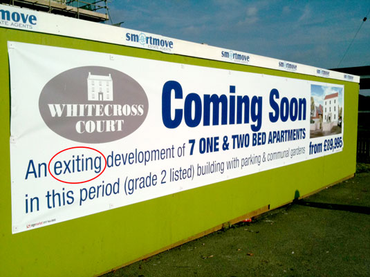比如說上面這個,本來應(yīng)該拼成”exciting”令人振奮的發(fā)展(大開發(fā)),結(jié)果拼成了”exiting”退出發(fā)展。意思正好截然相反。