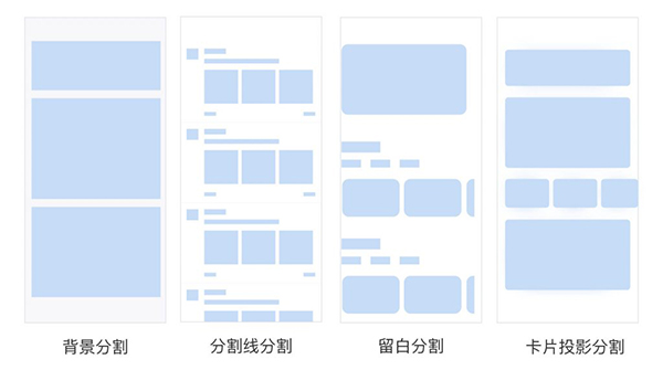 UI設(shè)計(jì)中最常見的一種分割分割方式就是分割線,它能有效的幫助用戶理解頁面層次,有分隔、有組織的作用,一般時(shí)為了將內(nèi)容分割開,形成獨(dú)立的內(nèi)容和信息,如圖: