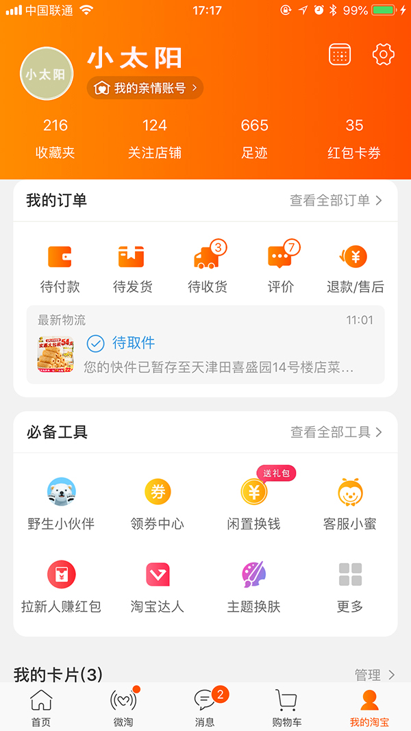 通過工具內(nèi)容顯性化設(shè)計,可實現(xiàn)用戶所見即所得,幫助用戶快速明確的理解到工具所提供的核心功能和服務(wù),有效的減少用戶與工具所提供的核心服務(wù)之間的交互步驟和流程,讓用戶在當(dāng)前工具的內(nèi)容區(qū)完成與工具的核心交互。如:淘寶「我的淘寶」頁面就采用了大量內(nèi)容顯性化的設(shè)計,用戶在當(dāng)前頁面就能快速掌握到核心的信息。