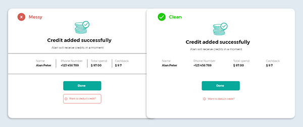 若想要將兩個不相關(guān)的元素分隔開來,使用分割線似乎理所應(yīng)當,但不得不說這種方式已經(jīng)過時,而更貼合當下、更好、更優(yōu)雅的呈現(xiàn)方式是“留白”,因為分割線的方式不僅是因為過時,不僅會讓掃視頁面花費更長的時間,而且增加的信息噪音會影響整體的層次結(jié)構(gòu)。而留白就會好很多。