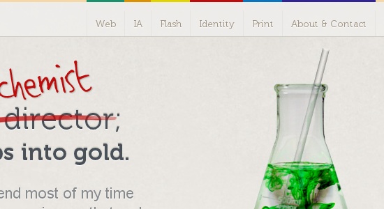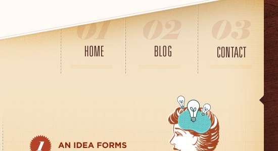 7、導航菜單周圍一圈略深于背景色的描邊讓導航和背景融合的更加自然。整個導航的顏色和底部的大約10個像素的陰影讓整個導航條看上去更像是電腦鍵盤上的一個個按鍵。