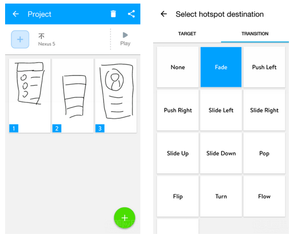 Marvel的側(cè)重點在于快速制作,除了拍照或使用相冊內(nèi)照片,還支持直接畫草圖。頁面之間還可以添加跳轉(zhuǎn)動作,是一款便捷易用的原型制作工具。