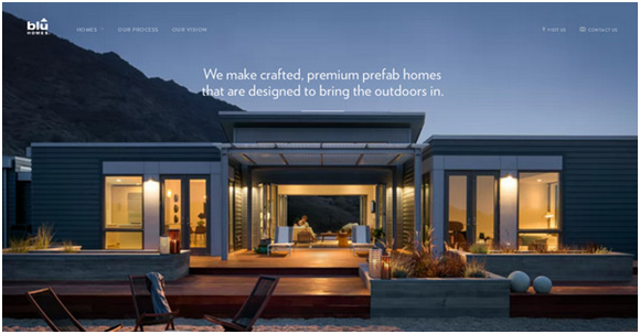 Blu Homes 的首頁非常的出眾,在文案設(shè)計和視覺設(shè)計之間找到了平衡點,兼顧了視覺和閱讀體驗。此外,自然的動效和精心選取的圖片為整個網(wǎng)站營造出溫馨,舒適的氣氛。