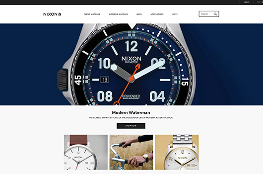 動畫是吸引顧客、與他們進行良好溝通較好的方式,目前很多電商網(wǎng)站開始將它注入設(shè)計中,讓在線購物體驗效果更卓越。如果使用位置和時機恰當(dāng),動畫會讓你的顧客感到你在真正關(guān)心他們的體驗。在2016年,你會看到更多電商網(wǎng)站有創(chuàng)意地運用動畫--例如按鈕旋轉(zhuǎn)、圖標(biāo)轉(zhuǎn)動和加載進度條--為顧客留下深刻印象。想找點靈感嗎?不妨來看看Nixon。