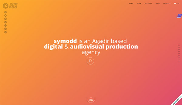 瀏覽過(guò)Symodd網(wǎng)站的人都應(yīng)該會(huì)注意到,它的首屏或說(shuō)介紹部分,主打由橙色到粉色的全屏漸變背景。這種漸變相對(duì)細(xì)微,因?yàn)檫@兩種色調(diào)差異不大,給人一種非常賞心悅目的感覺(jué)。