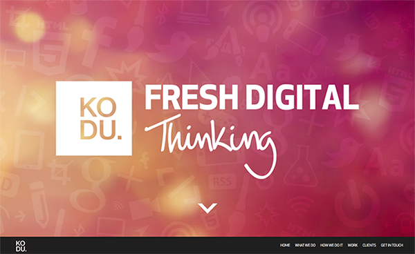 KODU的網(wǎng)頁(yè)設(shè)計(jì)除了漸變的背景圖片以外,還使用了一些炫光效果,亮麗的枚紅主色令網(wǎng)站變得格外清新樂(lè)觀。背景上的水印底紋設(shè)計(jì)也讓頁(yè)面不那么單調(diào),并且很好的體現(xiàn)了網(wǎng)站特色。