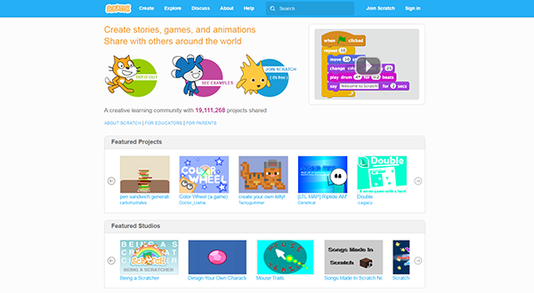 Scrath擁有超過40個的Lac項(xiàng)目,是一個非常棒的學(xué)習(xí)社區(qū)。你可以創(chuàng)建故事,游戲和動畫并分享給世界各地的朋友和家人。加入Scratch,弄一個你自己的項(xiàng)目吧。