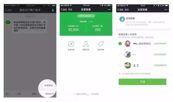 過去,商戶想要查看經(jīng)營數(shù)據(jù),需要在PC端輸入帳號、密碼,登錄后臺查看,無法實時管理?,F(xiàn)在,商戶只需通過微信支付商戶助手公眾號-我的帳號-經(jīng)營數(shù)據(jù),管理員根據(jù)流程指引開通該功能,還可以設置員工一起使用該功能,真正做到經(jīng)營數(shù)據(jù)管理移動化。